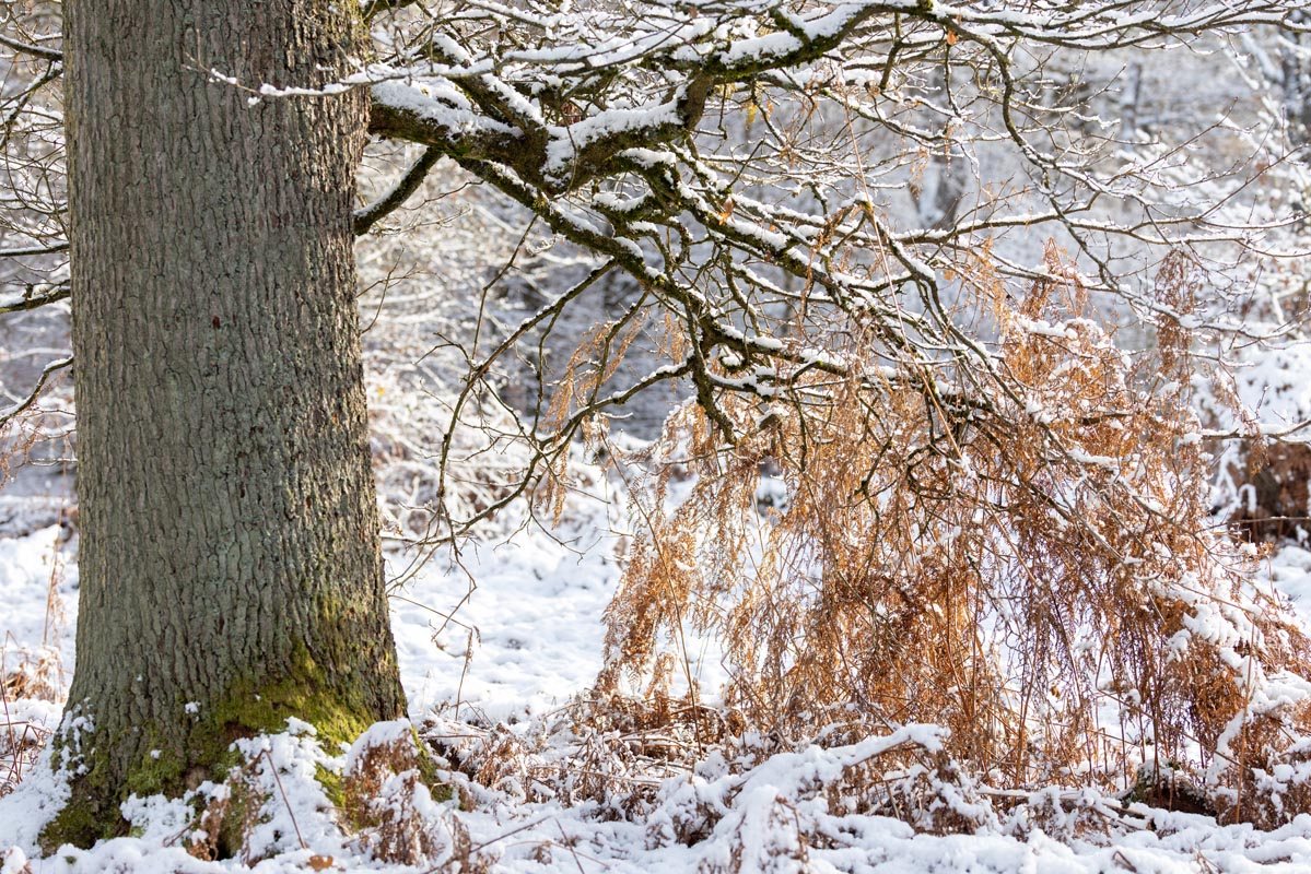 Der Schnee verzaubert die alten Bäume und es gibt wunderschöne Details zu entdecken.
